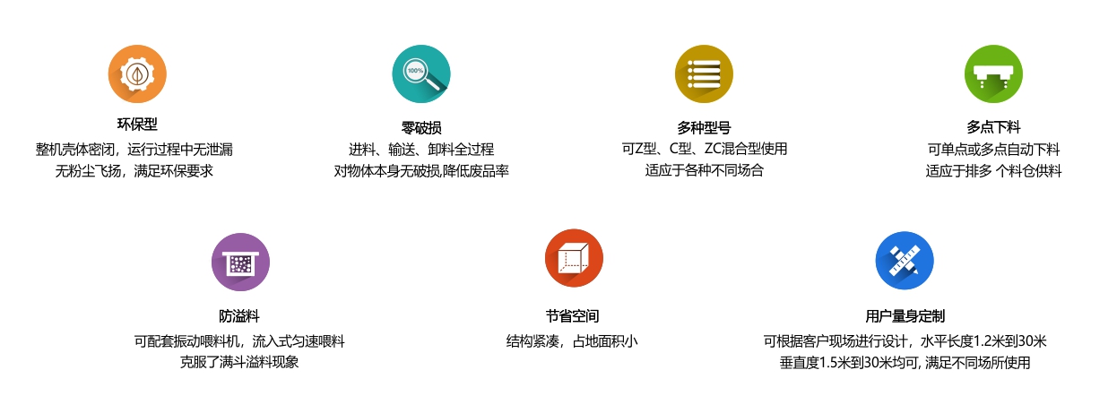 多点下料Z型提升机具有输送量大,提升高度高运行平稳可靠,寿命长等显著优点。本提升机适于输送粉状,粒状及小块状的无磨琢性及磨琢性小的物料,目前多用于称重包装机的供料,色选机的供料及复进供料,自动化生产线的立体循环上下料。